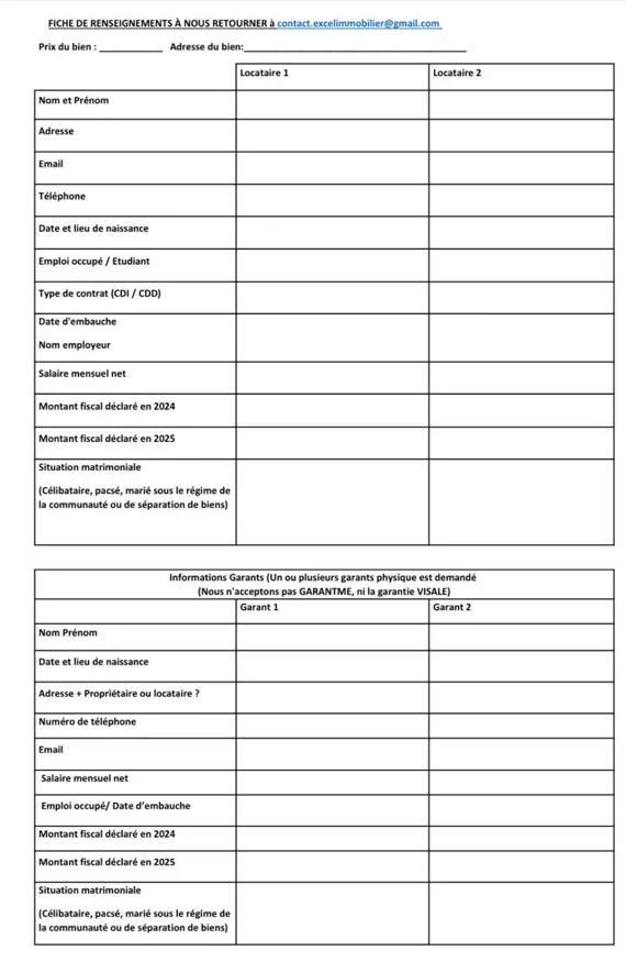 Si vous êtes intéressés veuillez nous renvoyer la fiche de renseignement se trouvant dans les photos / plan.